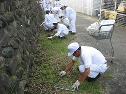 広報広聴委員会の後は会社に戻り、NTN桑名製作所周辺のクリーン作戦に参加しました。今回は全体で280人の参加で、私の担当は養老鉄道播磨駅周辺の草刈りでした。養老鉄道に乗車をするお客様の自転車を止めやすいようにしました。