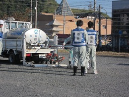・給水場所で給水車(給水ポンプ)の水が減った状況を想定し、第一環境㈱へ応援要請し、駆けつけた加圧給水車へ補給