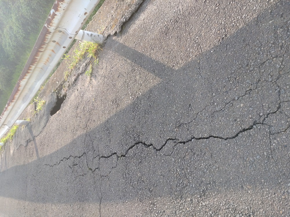 昨日、自宅周辺の市民より連絡があり「市道に大きな穴とヒビ割れができている。」早速現場にいきました。