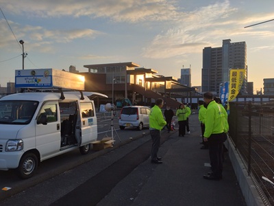 11月21日本日より、三重県の地域別最低賃金が1,087円(午後10時~午前5時に勤務する場合、深夜割増25%を加算1,359円)が本日より施行されるのに合わせ桑名駅西口でティッシュ配布と街宣活動がありました。